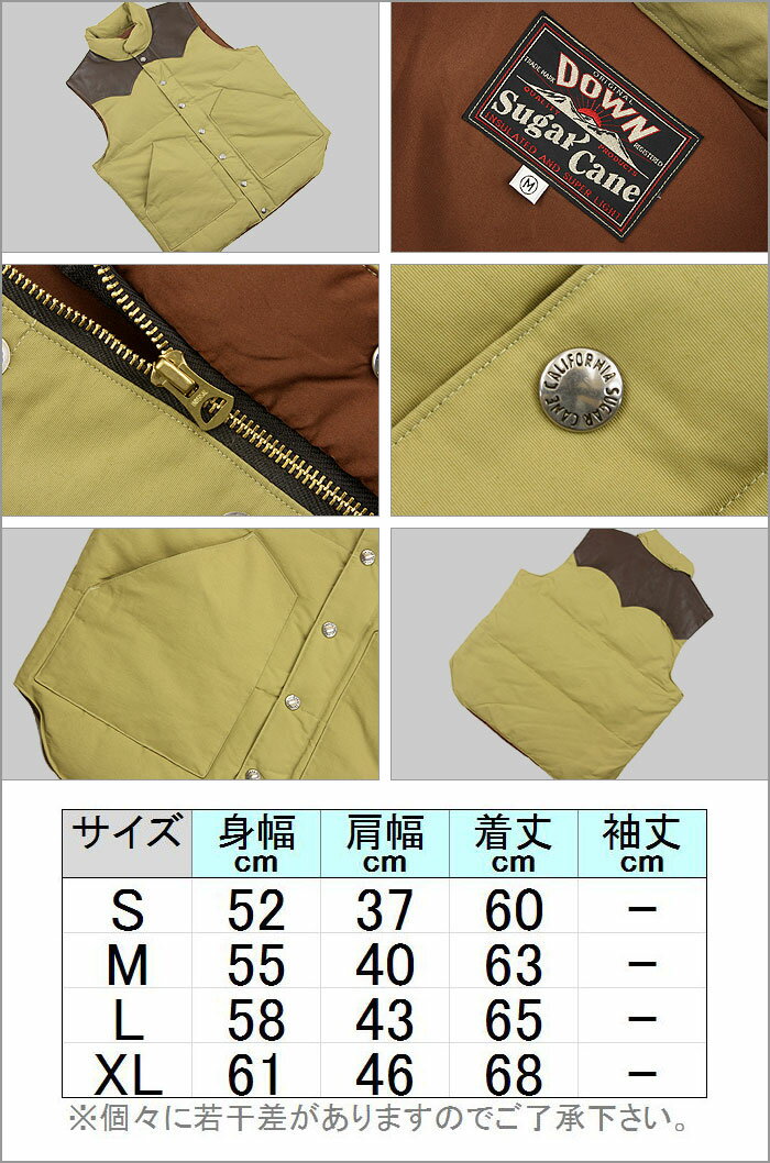 SC12340 ■■■ シュガーケーンより、レザーヨーク ダウンベスト登場!強度と軽量性に優れた、60/40クロス(綿60%、ナイロン40%)をメインに前後ヨーク部分に牛革を使用したシューガーケーンお馴染みの定番・ダウンベストです。